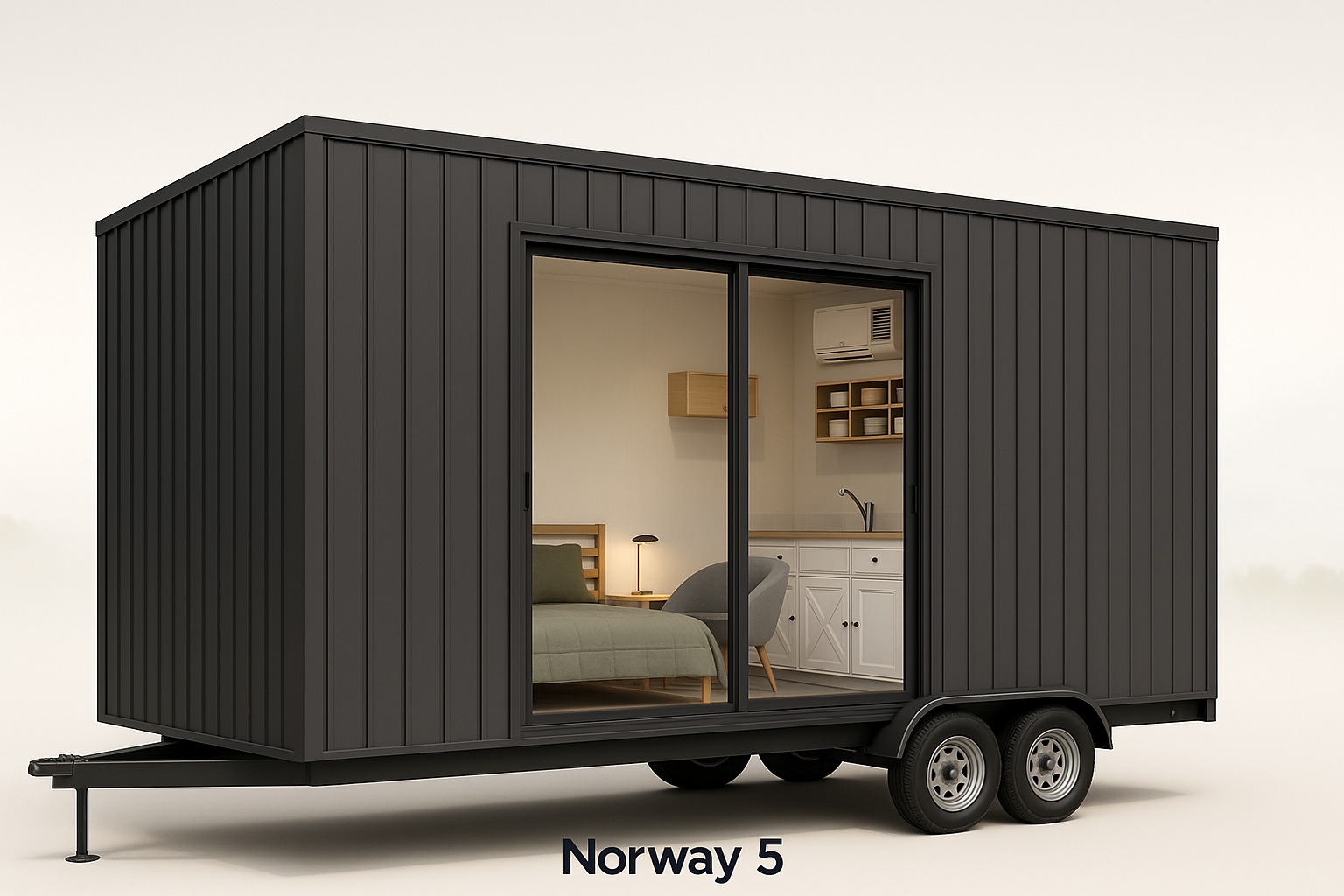 A beautifully finished 5.2-metre tiny home designed for comfort and practicality. The Norway 5 is fully wired and plumbed, ready to connect on site. Featuring a warm, minimalist interior with soft lighting, timber accents, and a functional kitchen, it’s ideal as a studio, guest retreat, or compact living solution.